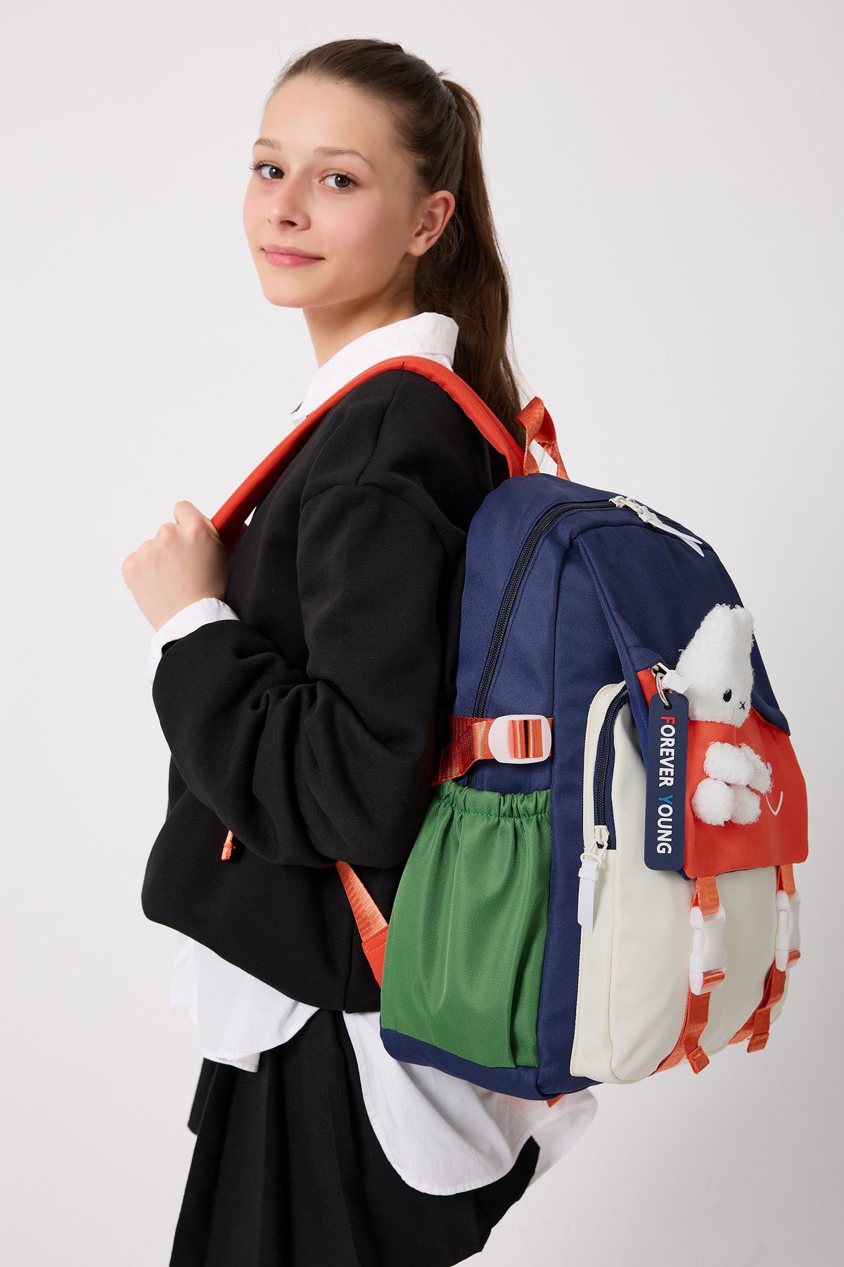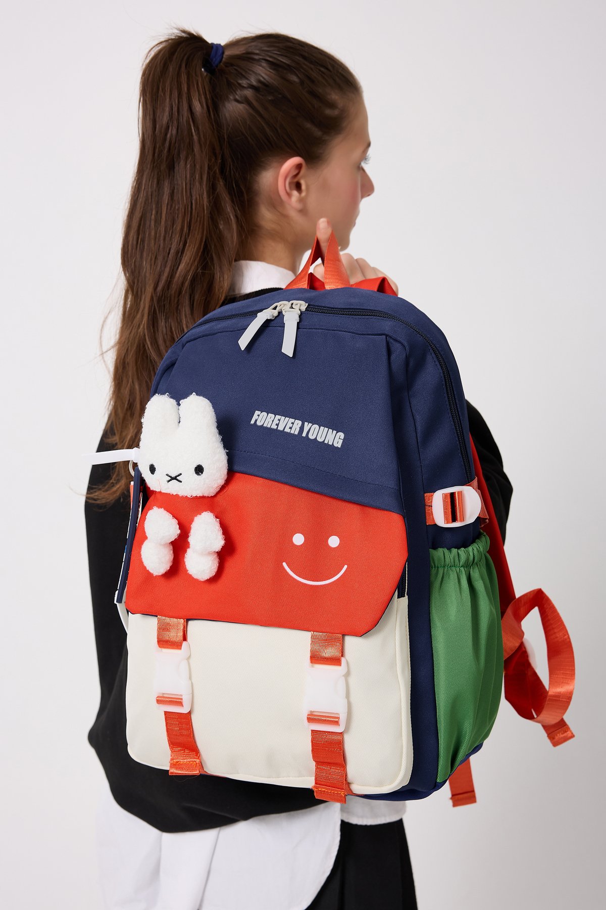 Forever Young Koleksiyonumuzla Parlamaya Hazır Olun.; ; Sevimli ayıcık detaylarıyla tasarlanmış, Ayıcıklı Sırt Çantası, okul günlerine hem renk hem de şıklık katıyor! ; Okul günlerinde rahatlıkla kullanabileceğiniz, kaliteli ayıcık figürleriyle süslenmiş büyük boy okul sırt çantası.; ; Dayanıklı dokuma kumaşı sayesinde uzun süreli kullanım imkanı sunar.; ; Ürün Ölçüleri:Soldan Sağa: 33 Cm Yükseklik: 44 Cm Tabanı: 14 Cm dir.; ; Her mevsim tercih edebileceğiniz, unisex tasarımıyla hem kız hem de erkek çocuklar için uygundur.; ; Yumuşak tekstil materyali ile konforlu taşıma deneyimi yaşatırken, 16 ila 45 litre kapasitesiyle geniş iç hacmiyle eşyalarınızı düzenli tutmanızda yardımcı olur.; ; Gençlerin enerjisine hitap eden casual/günlük ortamlarda ideal bir aksesuar olarak öne çıkar.; ; Mix deseniyle dikkat çekici ve şık bir görünüm kazandırırken, ister okula giderken ister arkadaşlarınızla dışarı çıkarken yanınızda taşıyabileceğiniz fonksiyonel bir parça haline gelir.; ; Çantanın su iten kumaş özellğinin olması ve kirlendiğinde silinmeyle bile kolayca çıkması çantayı uzun süre kullanımlarda favori çantanız yapar.; O kadar sevimli bir çantadır ki, günlük kullanımlar için hatta sporda bile tercih edilir.; Çanta taşımayı keyfe dönüştürür.