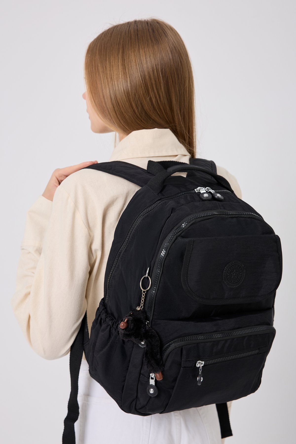 Kenyon Cox Büyük Boy Sırt Çantası ; Model: Büyük Boy Krınkıl Kumaş Sırt Çantası ; Soldan Sağa: 31 Cm Tabanı: 14 Cm Yüksekliği: 42 Cm Cep Sayısı: 6 Cepli, 2 Adet Yanlarda Suluk Bölmesi Mevcut ; Su Geçirmezlik : Yağmur Suyu Geçirmez ; Kumaş Sağlığı : Kanserojen Madde İçermez ; Kumaş Cinsi : En Yüksek Kalitede Krınkıl Kumaş Dayanıklı tekstil materyalden üretilmiş, uzun ömürlü kullanım sunar ; Deri detaylarının bulunmaması ile minimalist ve şık bir tasarıma sahiptir ; Seyahat,Okul Ve Günlük kullanım için idealdir ; Dokuma kumaş tipi sayesinde hafif ve konforlu bir taşıma deneyimi sağlar ; Yıkama talimatlarına uygun şekilde nemli bez ile temizlenebilir böylece çantanız her zaman yeni gibi kalır ; Unisex koleksiyon parçası olarak hem kadınlar hem de erkekler tarafından rahatlıkla kullanılabilir ; Tüm sezonlarda tercih edebileceğiniz bu sırt çantası, mevsimsel değişimlere uyum sağlar ; Kalitesini yansıtırken lisanslı deseniyle de stil sahibi görünüm kazandırır ; Tasarımıyla dinamik ve modern bir aksesuar seçeneği sunar ; Casual ve günlük ortamlarda rahatlıkla kombinlenebilen bu büyük boy sırt çantası, geniş iç hacmiyle eşyalarınızı düzenli tutmanızda yardımcı olur ; 16 ila 45 litre kapasiteye sahip olması sayesinde günlük ihtiyaçlarınız için yeterli alan sunarken aynı zamanda çok yönlülük sağlar ; Maymuncuk Anahtarlık Hediyeli, Çıkarılıp Takılabilir. ;