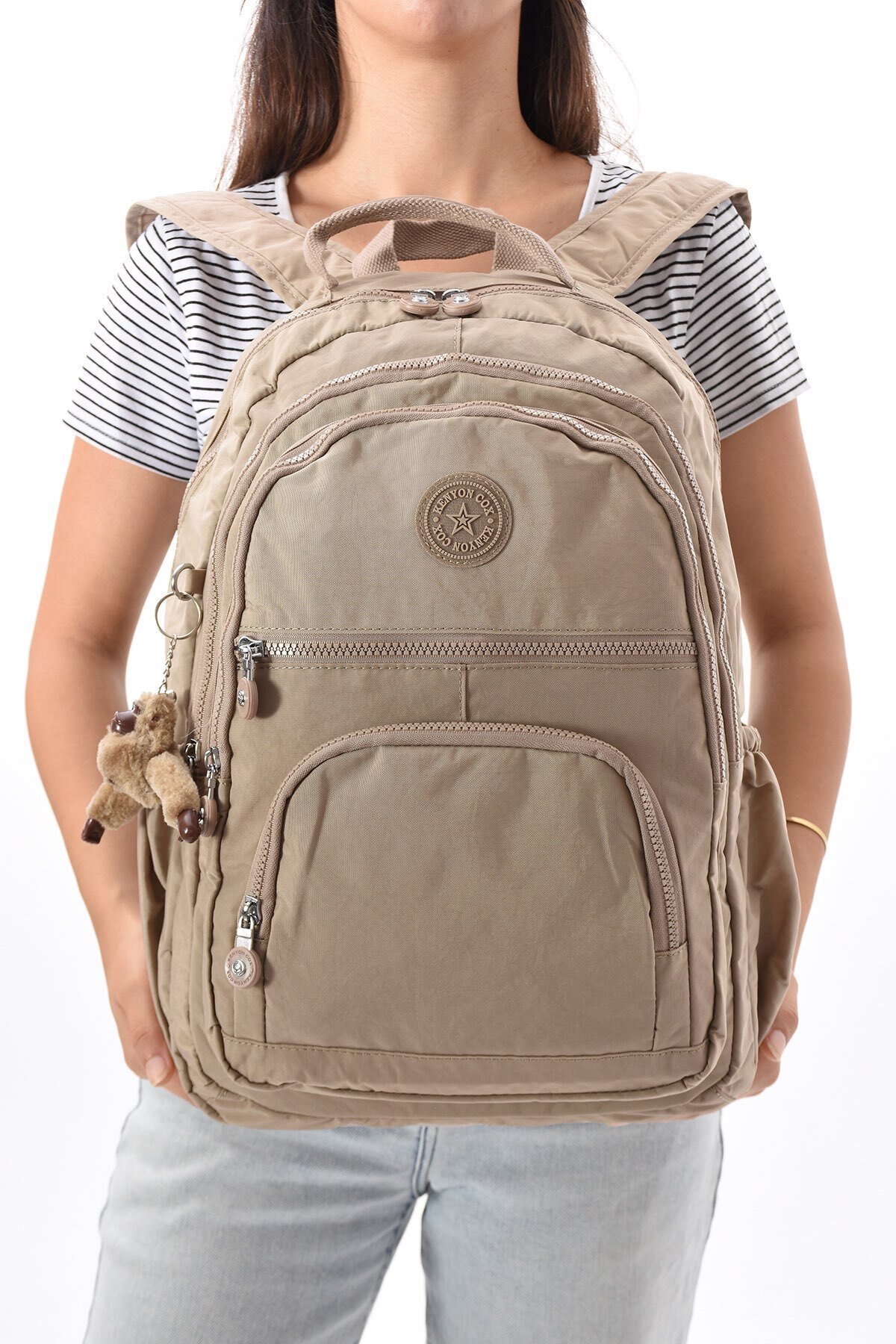 Kenyon Cox Büyük Boy Sırt Çantası ; Model: Büyük Boy Sırt Çantası Su İtici Özelliği Kaliteli Krınkıl Kumaş ; Soldan Sağa: 32 Cm Tabanı: 16 Cm Yüksekliği: 48 Cm Cep Sayısı: 6 Cepli, 2 Adet Yanlarda Suluk Bölmesi Mevcut ; Su Geçirmezlik : Yağmur Suyu Geçirmez ; Kumaş Sağlığı Kanserojen Madde İçermez ; Kumaş Cinsi : En Yüksek Kalitede Krınkıl Kumaş Dayanıklı tekstil materyalden üretilmiş, uzun ömürlü kullanım sunar ; Deri detaylarının bulunmaması ile minimalist ve şık bir tasarıma sahiptir ; Günlük kullanım için idealdir ; Dokuma kumaş tipi sayesinde hafif ve konforlu bir taşıma deneyimi sağlar ; Yıkama talimatlarına uygun şekilde nemli bez ile temizlenebilir böylece çantanız her zaman yeni gibi kalır ; Unisex koleksiyon parçası olarak hem kadınlar hem de erkekler tarafından rahatlıkla kullanılabilir ; Tüm sezonlarda tercih edebileceğiniz bu sırt çantası, mevsimsel değişimlere uyum sağlar ; Kalitesini yansıtırken lisanslı deseniyle de stil sahibi görünüm kazandırır ; Tasarımıyla dinamik ve modern bir aksesuar seçeneği sunar ; Casual ve günlük ortamlarda rahatlıkla kombinlenebilen bu büyük boy sırt çantası, geniş iç hacmiyle eşyalarınızı düzenli tutmanızda yardımcı olur ; 16 ila 45 litre kapasiteye sahip olması sayesinde günlük ihtiyaçlarınız için yeterli alan sunarken aynı zamanda çok yönlülük sağlar ; Maymuncuk Anahtarlık Hediyeli, Çıkarılıp Takılabilir. ;
