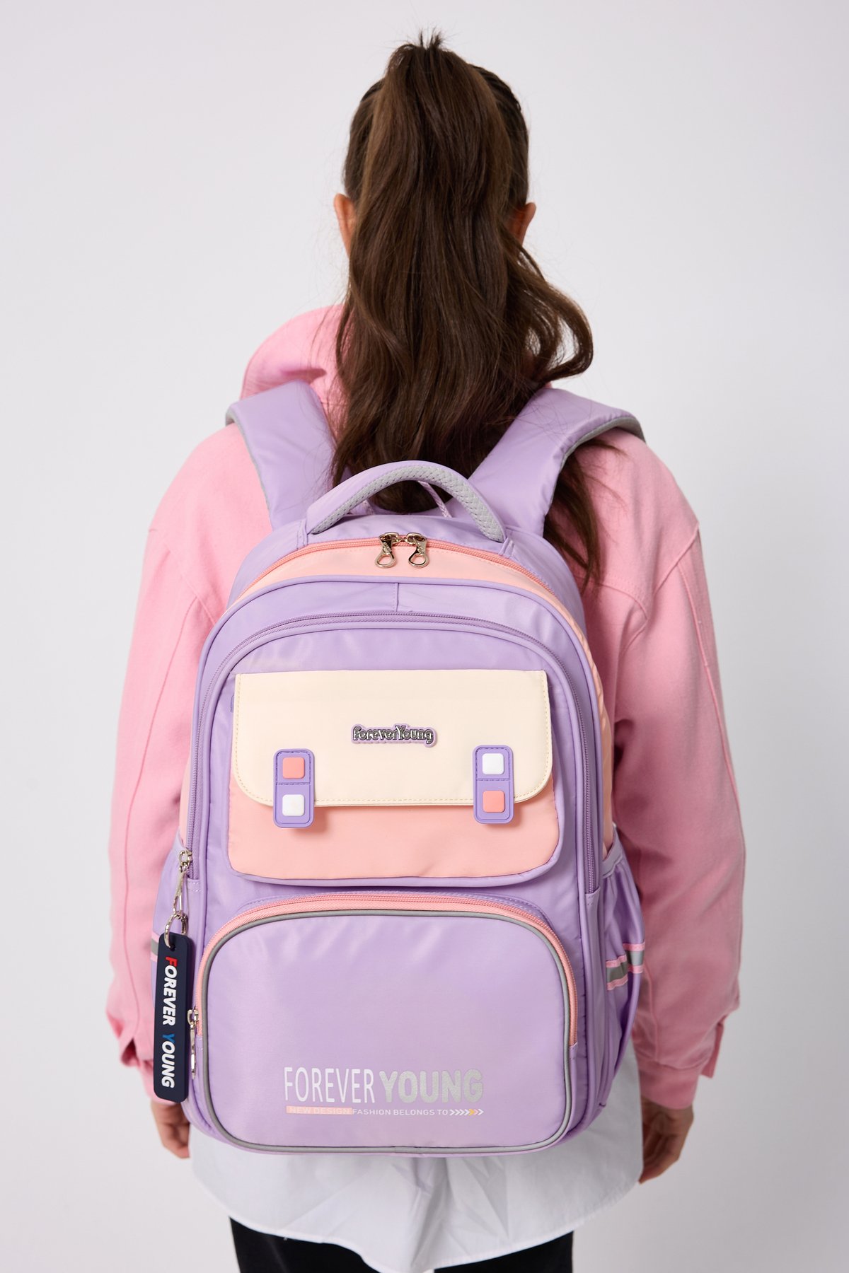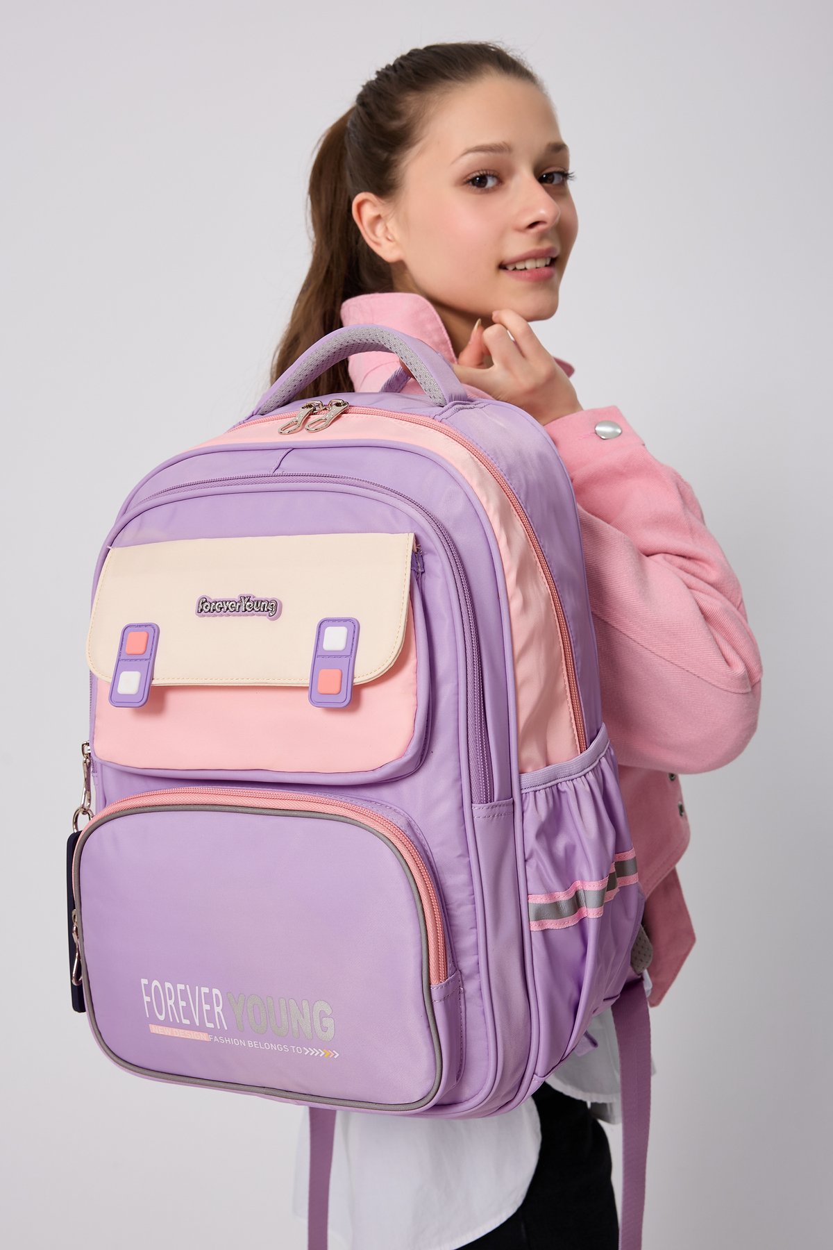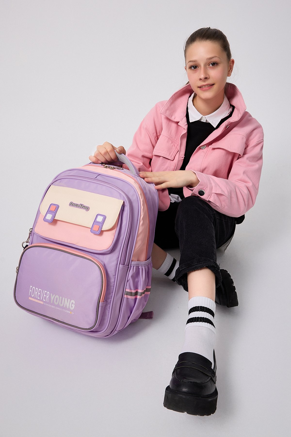 Forever Young Koleksiyonumuzla Parlamaya Hazır Olun.; ; Sevimli detaylarıyla tasarlanmış, Sırt Çantası, okul günlerine hem renk hem de şıklık katıyor! ; Okul günlerinde rahatlıkla kullanabileceğiniz, kaliteli süslenmiş okul sırt çantası.; ; Dayanıklı malzemelerden üretilen çantamız, bu sayede uzun süreli kullanım imkanı sunar.; ; Tam Ortopedik destekli sırt bölgesi, uzun süreli kullanımda konfor sağlar.; ; Ortopedik bölümün altında cırtlı bel koruyucu aparat bulunur, klipslerle bele tam oturması sağlanır.; ; Ayarlanabilir ve süngerle destekli sırt askıları rahat taşıma sağlar.; ; Askılarda reflektör detayları, gece veya düşük ışık koşullarında ekstra güvenlik sunar.; ; Ürün Ölçüleri:Soldan Sağa: 28 Cm Yükseklik: 40 Cm Tabanı: 13 Cm dir.; ; Ürünümüzde 3 Adet Fermuarlı Göz, 1 Adet Büyük Kapaklı Cep, iki yanda matara bölmeleri, su şişesi veya diğer eşyalar için uygundur.; ; İçinde 1 Adet Büyük Bölme, ayraç bölmesi ve 1 adet sabitleme lastik bandı bölümü bulunur.; ; unisex tasarımıyla hem kız hem de erkek çocuklar için uygundur.; ; Yumuşak tekstil materyali ile konforlu taşıma deneyimi yaşatırken, geniş iç hacmiyle eşyalarınızı düzenli tutmanızda yardımcı olur.; ; Mix deseniyle dikkat çekici ve şık bir görünüm kazandırırken, ister okula giderken ister arkadaşlarınızla dışarı çıkarken yanınızda taşıyabileceğiniz fonksiyonel bir parça haline gelir.; ; Çantanın su iten kumaş özellğinin olması ve kirlendiğinde silinmeyle bile kolayca çıkması çantayı uzun süre kullanımlarda favori çantanız yapar.; O kadar sevimli bir çantadır ki, günlük kullanımlar için bile Çanta taşımayı keyfe dönüştürür.; ; Bu çanta, ortapedik destek ve kullanışlı özellikleriyle okulda çocuğunuzun rahatlığı için mükemmel bir tercihtir.