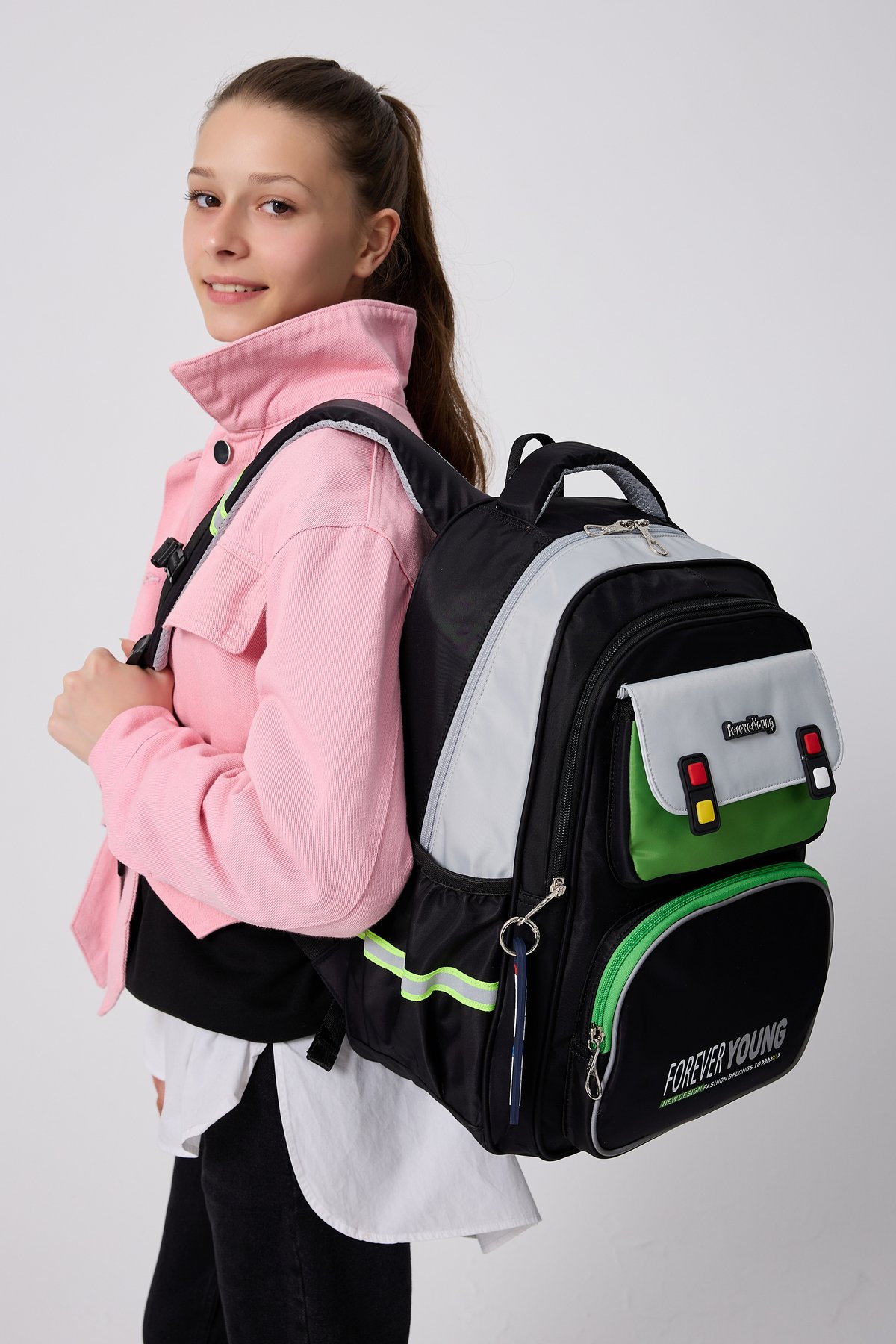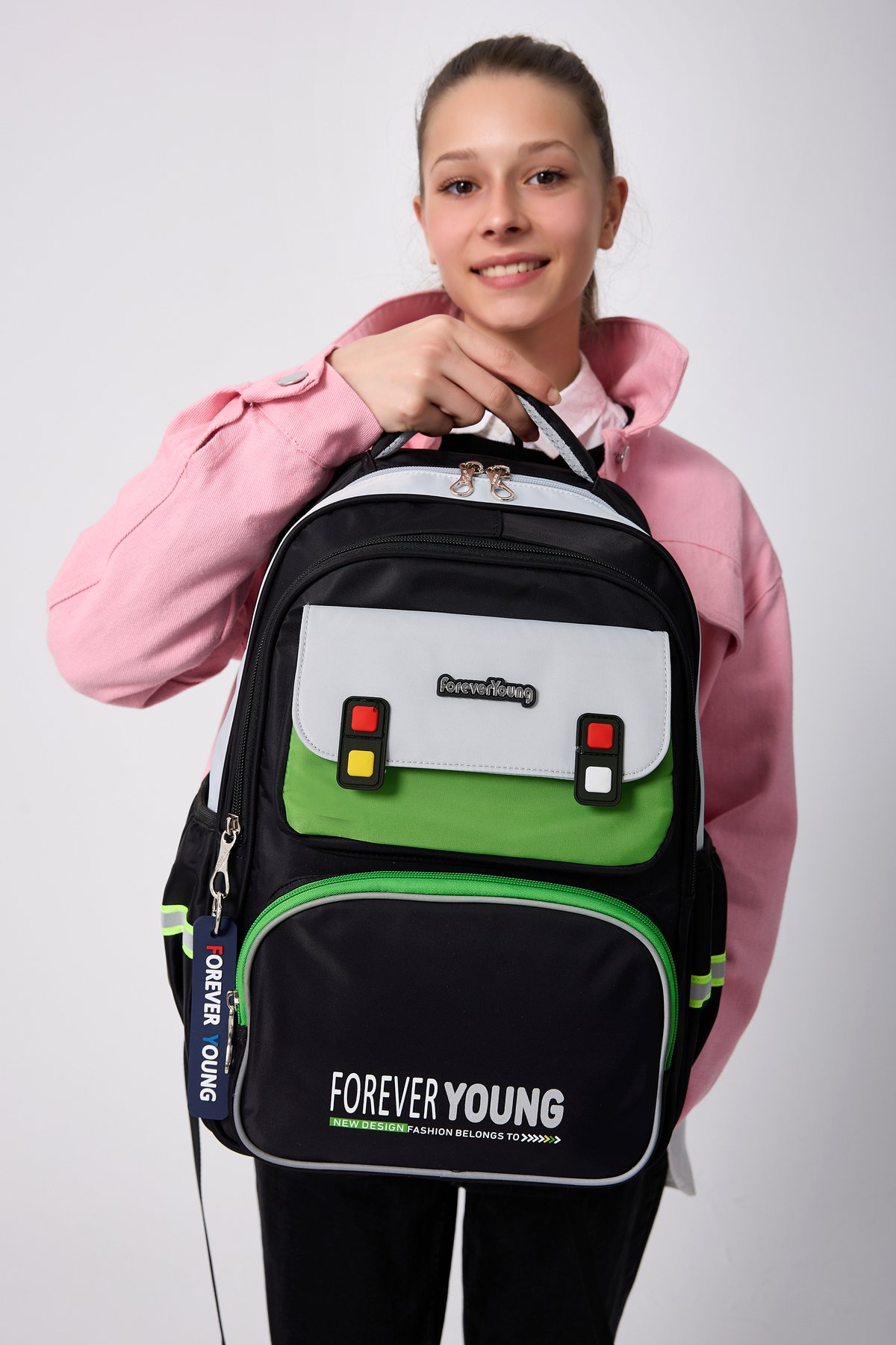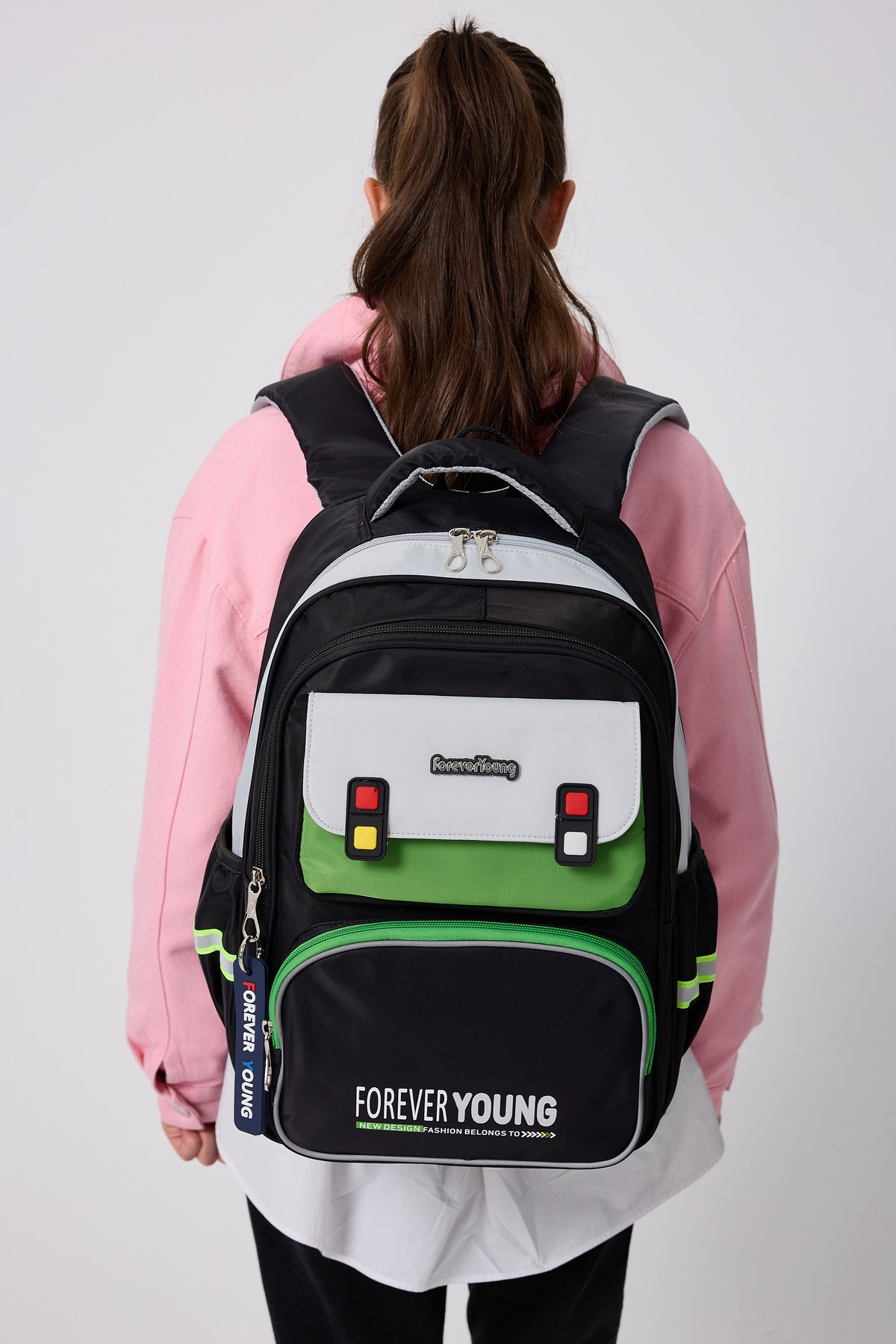 Forever Young Koleksiyonumuzla Parlamaya Hazır Olun.; ; Sevimli detaylarıyla tasarlanmış, Sırt Çantası, okul günlerine hem renk hem de şıklık katıyor! ; Okul günlerinde rahatlıkla kullanabileceğiniz, kaliteli süslenmiş okul sırt çantası.; ; Dayanıklı malzemelerden üretilen çantamız, bu sayede uzun süreli kullanım imkanı sunar.; ; Tam Ortopedik destekli sırt bölgesi, uzun süreli kullanımda konfor sağlar.; ; Ortopedik bölümün altında cırtlı bel koruyucu aparat bulunur, klipslerle bele tam oturması sağlanır.; ; Ayarlanabilir ve süngerle destekli sırt askıları rahat taşıma sağlar.; ; Askılarda reflektör detayları, gece veya düşük ışık koşullarında ekstra güvenlik sunar.; ; Ürün Ölçüleri:Soldan Sağa: 28 Cm Yükseklik: 40 Cm Tabanı: 13 Cm dir.; ; Ürünümüzde 3 Adet Fermuarlı Göz, 1 Adet Büyük Kapaklı Cep, iki yanda matara bölmeleri, su şişesi veya diğer eşyalar için uygundur.; ; İçinde 1 Adet Büyük Bölme, ayraç bölmesi ve 1 adet sabitleme lastik bandı bölümü bulunur.; ; unisex tasarımıyla hem kız hem de erkek çocuklar için uygundur.; ; Yumuşak tekstil materyali ile konforlu taşıma deneyimi yaşatırken, geniş iç hacmiyle eşyalarınızı düzenli tutmanızda yardımcı olur.; ; Mix deseniyle dikkat çekici ve şık bir görünüm kazandırırken, ister okula giderken ister arkadaşlarınızla dışarı çıkarken yanınızda taşıyabileceğiniz fonksiyonel bir parça haline gelir.; ; Çantanın su iten kumaş özellğinin olması ve kirlendiğinde silinmeyle bile kolayca çıkması çantayı uzun süre kullanımlarda favori çantanız yapar.; O kadar sevimli bir çantadır ki, günlük kullanımlar için bile Çanta taşımayı keyfe dönüştürür.; ; Bu çanta, ortapedik destek ve kullanışlı özellikleriyle okulda çocuğunuzun rahatlığı için mükemmel bir tercihtir.